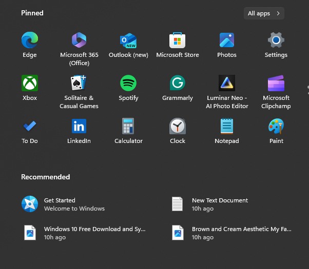 Simplified Layout: Live Tiles are replaced with a cleaner, more streamlined layout. The emphasis is on simplicity, allowing users to navigate with ease and efficiency.